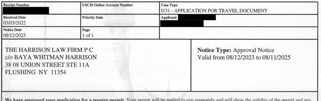 移民局处理了277天就批准了客户的回美证申请。客户在我们的协助下提交申请后即可离境,而且不需要担心录指纹的步骤。客户在移民局的正常审理时间范围内顺利地获得回美证。