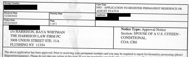 显而易见,移民局审理了较长时间才批准这份申请。尽管我们提交了所有要求的材料, 移民局依然发出补件通知,要求更多可以证明申请人的婚姻真实性的材料。因此我们协助客户认真仔细地回复了移民局的要求,同时提供了相应的材料。移民局最终批准了客户的婚姻绿卡申请!